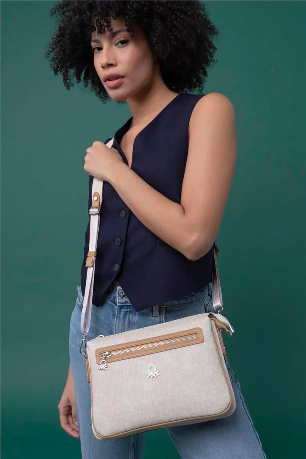 Benetton 1276 Beyaz A.Gri Baskılı Çarpraz Bayan Çanta Benetton 1276 Bej A.Camel Baskılı Çarpraz Bayan Çanta