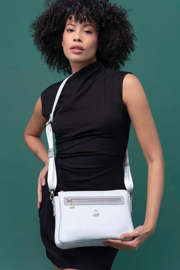 Benetton 1276 Beyaz A.Gri Baskılı Çarpraz Bayan Çanta