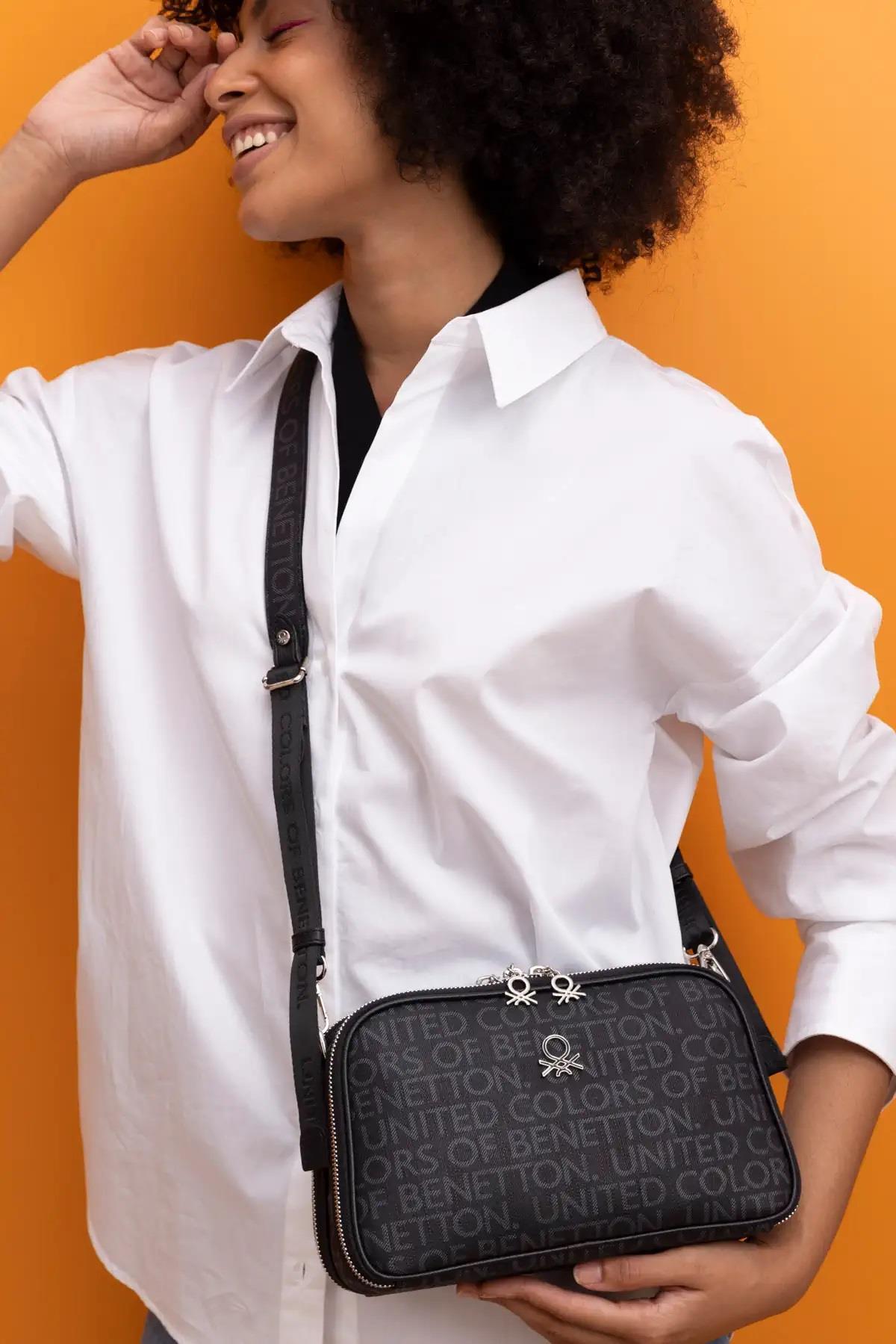 Benetton 1378 Siyah Baskılı Çarpraz Bayan Çanta (3BENETTONÇ0131-SYH)