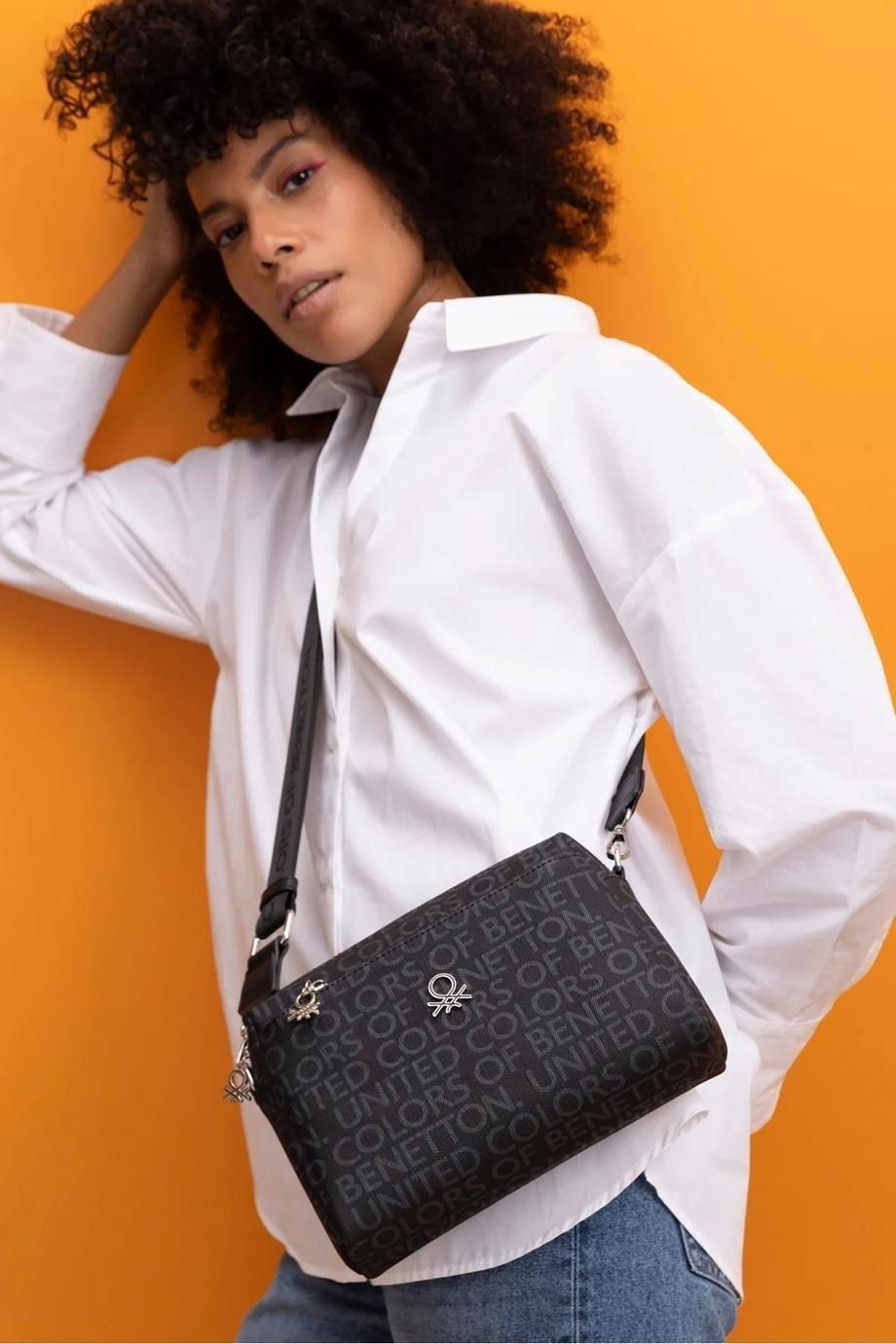Benetton 1381 Siyah Baskılı Çarpraz Bayan Çanta