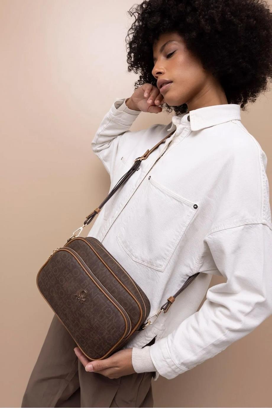 Benetton 1398 Kahve Taba Baskılı Çarpraz Bayan Çanta (3BENETTONÇ0137-KAHVETABA)
