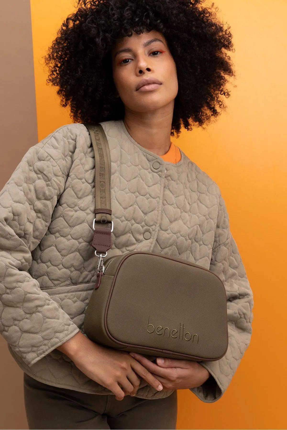 Benetton 1435 Haki Kahve Baskılı Çarpraz Bayan Çanta (3BENETTONÇ0142-HAKİ KAHVE)