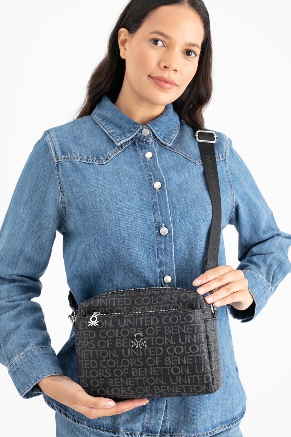Benetton 1642 Siyah Baskılı Çarpraz Bayan Çanta (3BENETTONÇ0184-SYH)