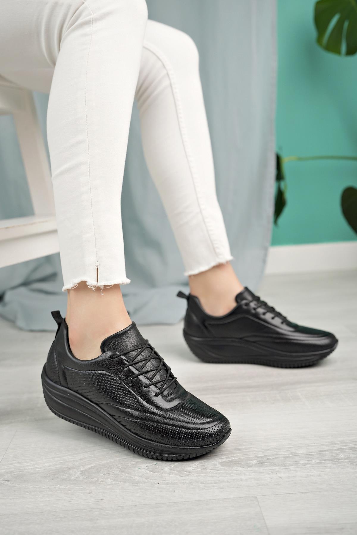 Capella 2032 Siyah Hakiki Deri Günlük Kadın Yürüyüş Ayakkabı