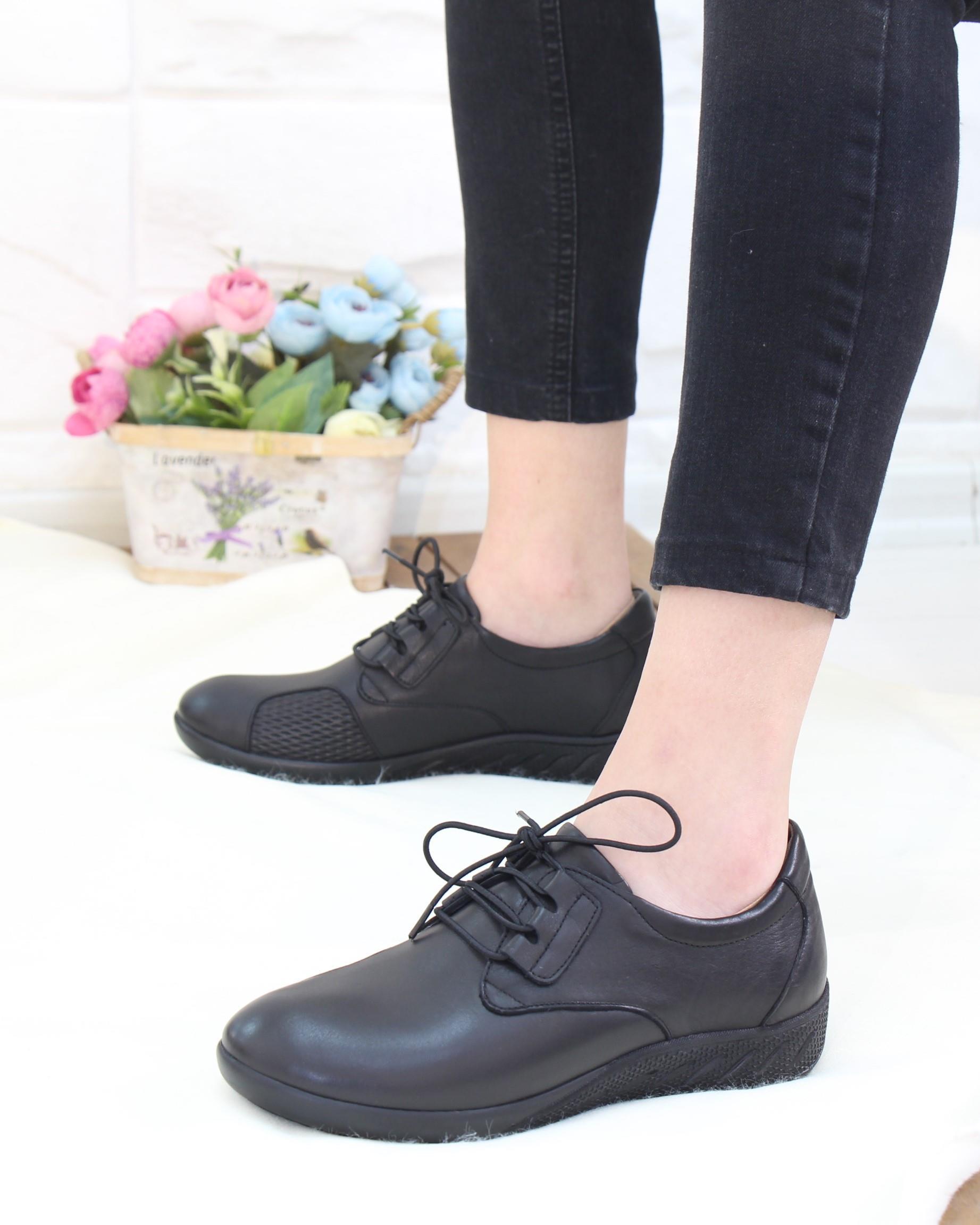 Capella 504 Siyah Hakiki Deri Günlük Kadın Yürüyüş Ayakkabı