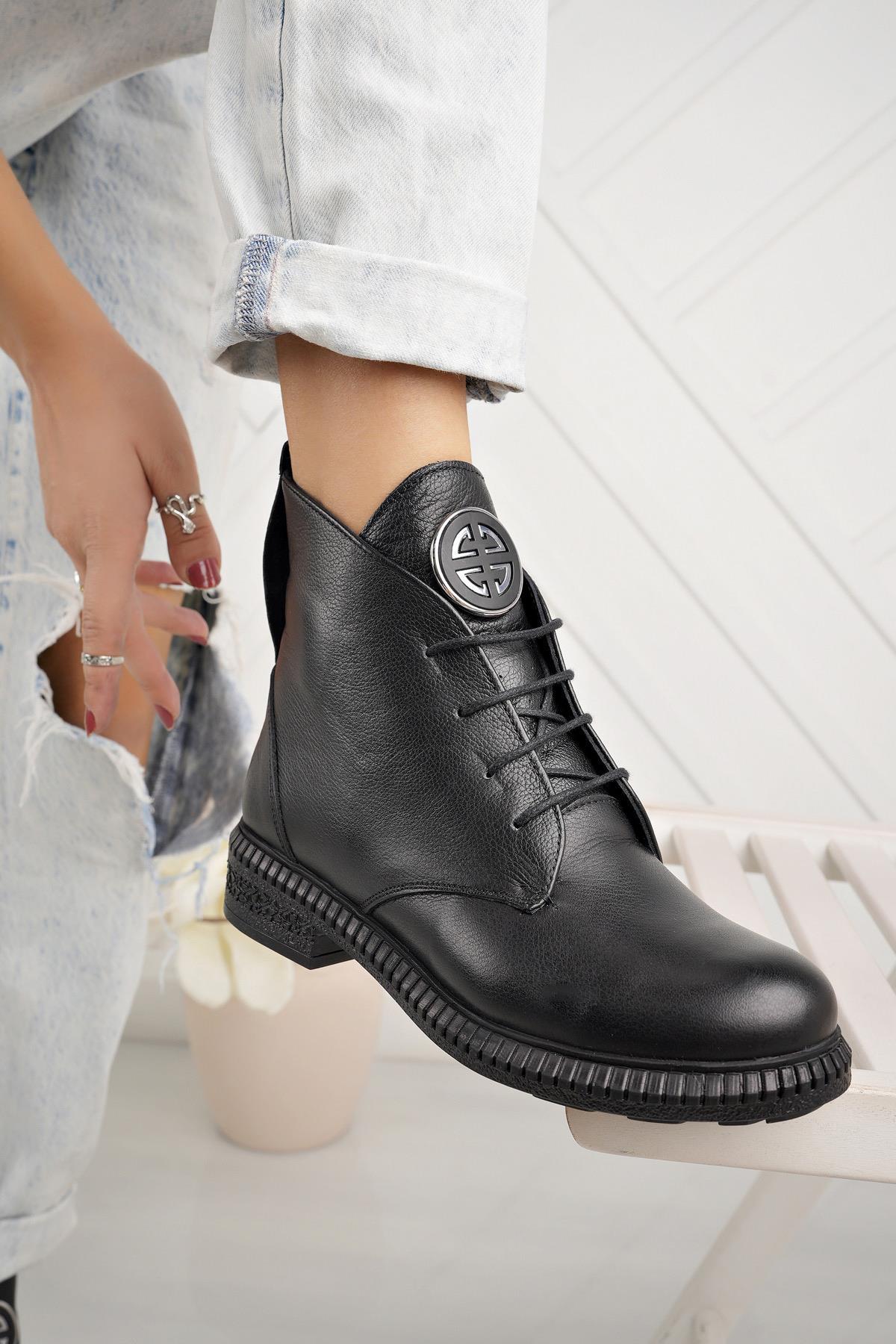 Castle Black 20915-1 Siyah Hakiki Deri Fermuarlı Kadın Bot (3SARIKAYA00028-SYH)