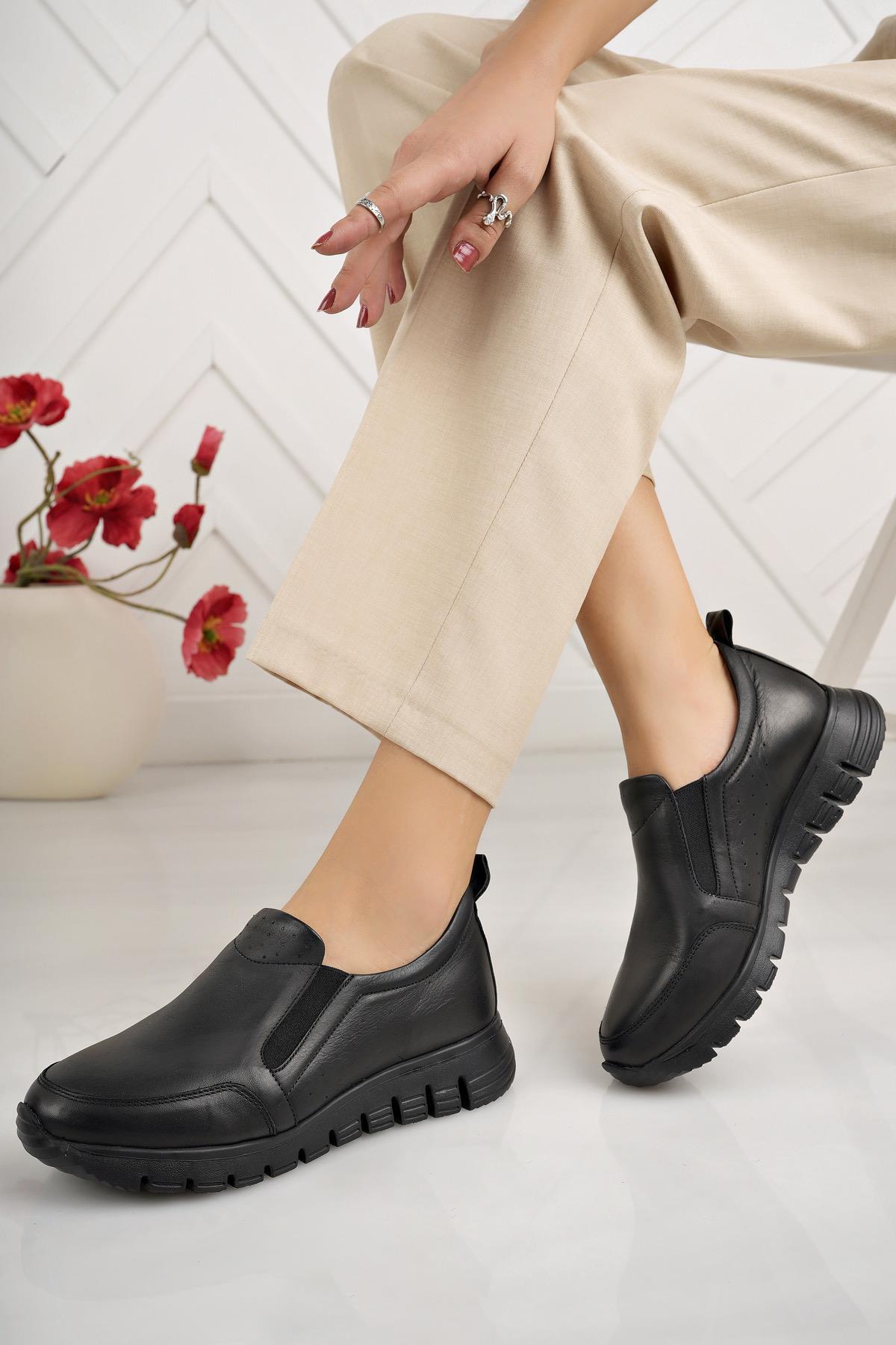 Mammamia D24KA 3220 Siyah Hakiki Deri Kadın Ayakkabı