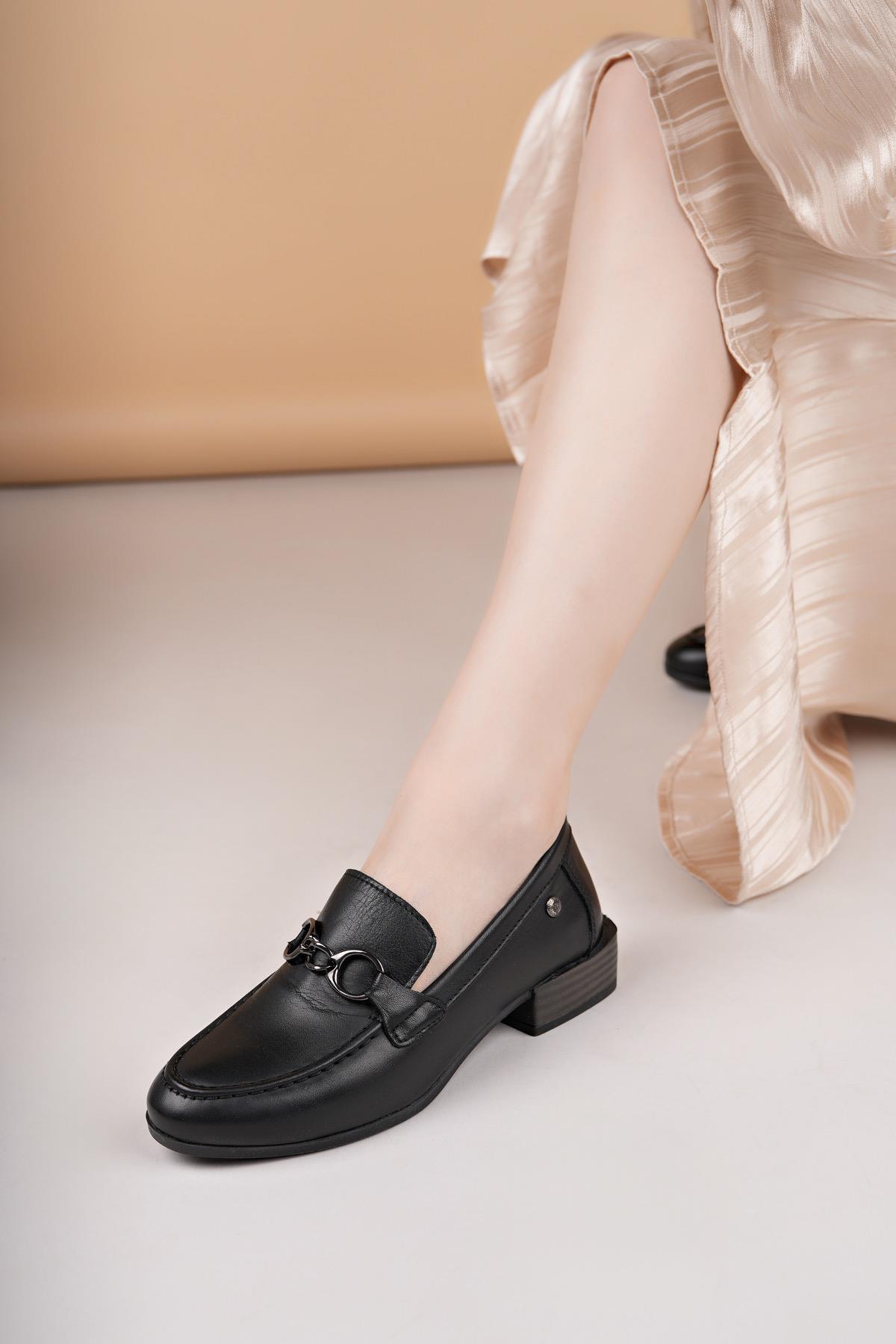 Mammamia D25YA 3355 Siyah Hakiki Deri Maskulen Kadın Ayakkabı (3DİYALOG000237-SYH)